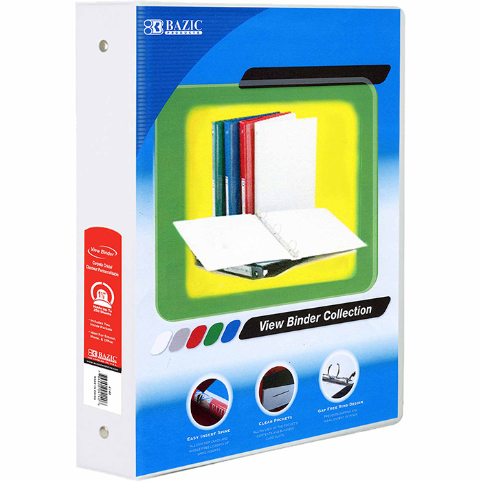 1.5″ White 3-Ring View Binder w/ 2-Pockets. Be ready and organized for your presentation, business meeting, interview and more with our ready to use 3-Ring Binder. Includes interior pockets. 280 sheet capacity. Chipboard is made from 100% recycled material.